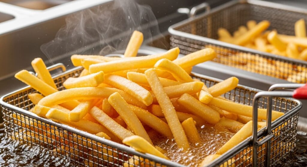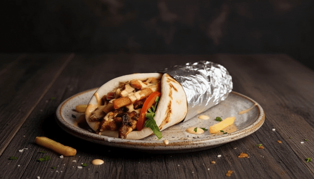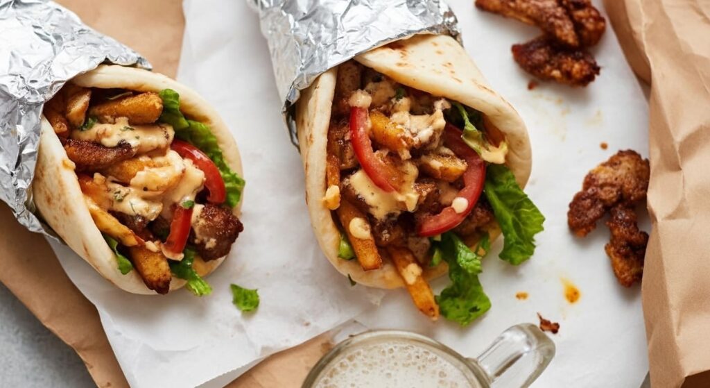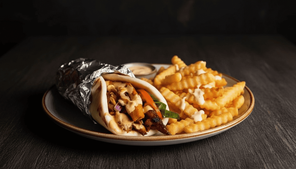 Cook the hot chips (if using) next – Prepare the fries using your preferred method. If baking or air-frying, time them so they’re ready when the gyros is assembled. If frying, cook them and keep warm in a 100 °C / 200 °F oven until ready to serve.