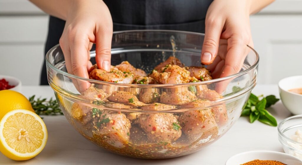 2. Toss the chicken in the marinade, making sure it gets into all the nooks and crannies.