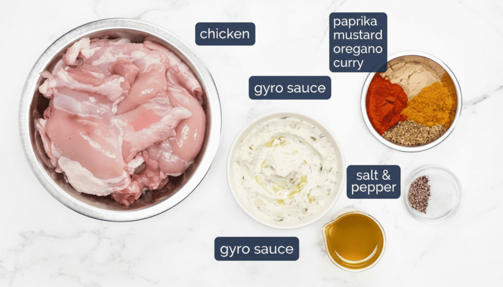 Here’s a clean, simple way to introduce the ingredients section for Kalimera’s Greek Chicken Gyros: