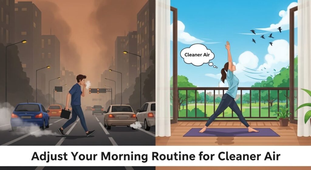 If your area experiences peak pollution levels in the morning, tweak your routine to protect your heart. Instead of stepping outside for a walk or run, try a quick indoor session—like a 10-minute treadmill jog or a beginner-friendly home workout. Follow it up with a warm cup of turmeric water or green tea to help naturally reduce inflammation.