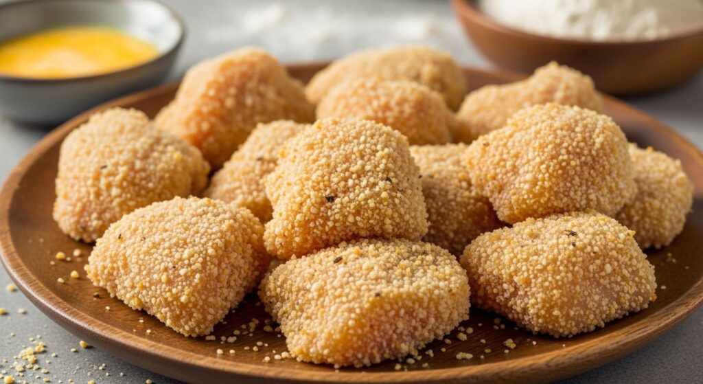 Coating the Chicken – Dip each piece of chicken into the batter, holding it up for a few seconds to let any excess drip off. The batter should be thick enough to fully coat the chicken, with just a hint of translucence.