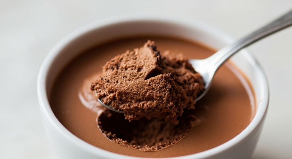 Aquafaba is the liquid from canned chickpeas—and it’s pure magic. When whipped with cream of tartar, it transforms into stiff, glossy peaks just like egg whites. Once folded into the chocolate mixture, it creates that classic airy mousse consistency.